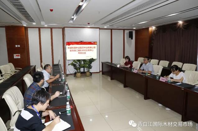 2020年8月3日下午,陜西林業(yè)集團木業(yè)有限公司副總經(jīng)理王磊一行三人來到青白江國際木材交易中心參觀交流,公司總經(jīng)理助理汪永福、副總經(jīng)理張力鏷、信息發(fā)展部經(jīng)理彭莎熱情接待了來訪嘉賓。