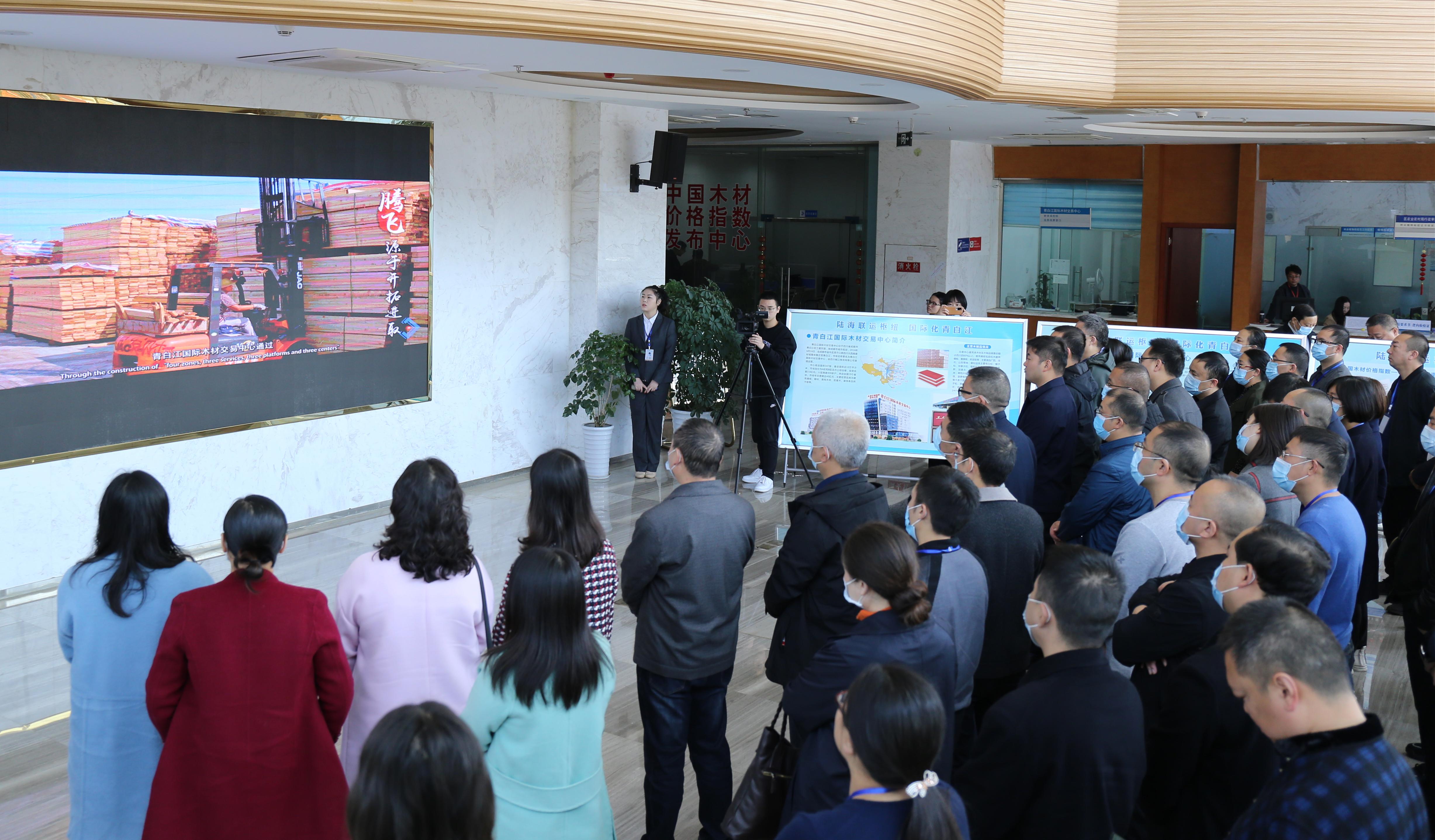 參觀團(tuán)首先在我中心的服務(wù)大廳觀看了企業(yè)宣傳片。我中心的解說員通過對(duì)服務(wù)大廳的“木材價(jià)格指數(shù)”、“中歐班列(成都)木材集散中心”等四個(gè)展版的講解,使來賓對(duì)我中心的發(fā)展過程和創(chuàng)建的四大品牌有了初步了解。