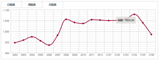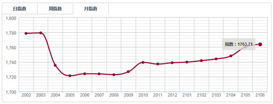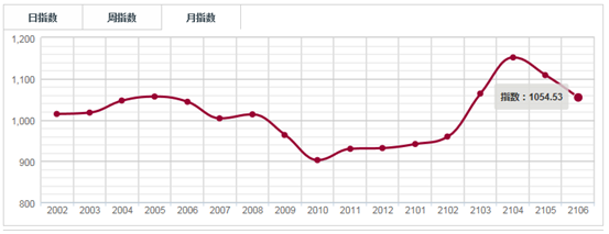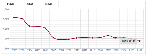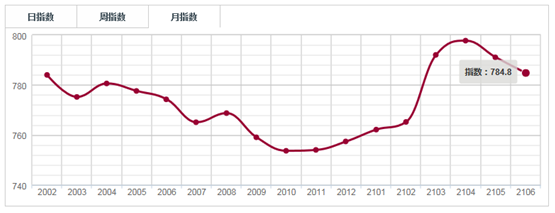 中國鋸材分類指數(shù)月指數(shù)走勢圖