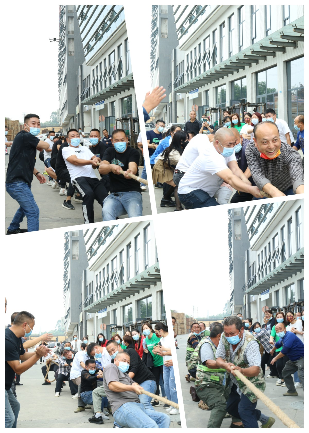 園區(qū)共組建AC區(qū)客戶(hù)代表隊(duì)、B區(qū)客戶(hù)代表隊(duì)、同心裝卸隊(duì)代表隊(duì)、物流公司代表隊(duì)4只參賽隊(duì)伍,每隊(duì)10人組成,8名男生2名女生。這是一項(xiàng)考驗(yàn)團(tuán)隊(duì)協(xié)作能力的運(yùn)動(dòng),既要靠團(tuán)隊(duì)中每個(gè)人過(guò)硬的身體素質(zhì),更要靠全員的默契配合。比賽中,4只參賽隊(duì)伍斗志昂揚(yáng),每組隊(duì)員心往一處想,勁往一處使,拼盡全力,氣勢(shì)如虹。拉拉隊(duì)們也毫不示弱,加油聲此起彼伏,將比賽的氣氛一次次推向高潮,最終B區(qū)客戶(hù)代表隊(duì)獲得拔河比賽冠軍。