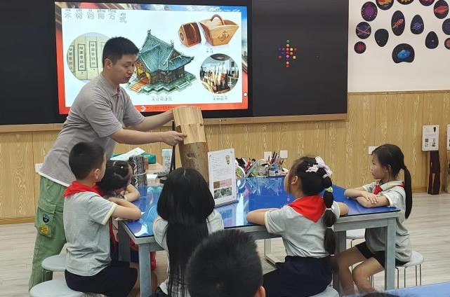 課堂上,中心老師深入淺出,利用卡通動(dòng)畫勾勒出歷史人物,分享木文化小故事,普及木材知識(shí),孩子們聽(tīng)得津津有味,紛紛舉手回答提問(wèn),現(xiàn)場(chǎng)氣氛歡樂(lè)愉悅,受眾度極高。尤其在木制品手工創(chuàng)意制作環(huán)節(jié),學(xué)生們更是興致高昂,都想爭(zhēng)當(dāng)一名“小魯班”。世界各地珍貴的木材標(biāo)本、沉侵式的手工藝體驗(yàn),深深吸引著在場(chǎng)的每一位同學(xué)。