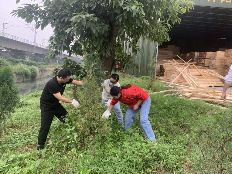 公司環(huán)境保護領導小組組織各支部黨員志愿者、各部室普通職工清理“責任田”,大家穿上志愿者紅色馬甲,拿起鋤頭、鐮刀、小推車等勞動工具,分工合作、默契配合,有的負責清掃園區(qū)公共區(qū)域的白色垃圾和木材廢料,有的集中精力清理地溝里的磚頭,有的對倒伏的樹苗用木條進行了扶正和加固,為園區(qū)的整體環(huán)境衛(wèi)生按下了“美顏鍵”。