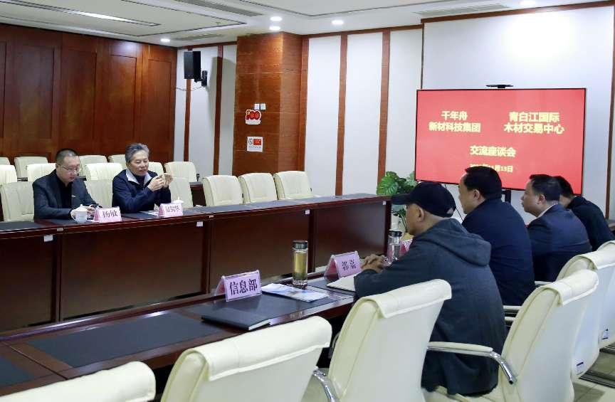 11月13日上午,千年舟新材科技集團(tuán)股份有限公司董事長(zhǎng)陸銅華一行到訪(fǎng)青白江國(guó)際木材交易中心。公司總經(jīng)理何仕海、副總經(jīng)理郭嘉接待了來(lái)賓,全程陪同參觀四川木文化國(guó)際交流中心。