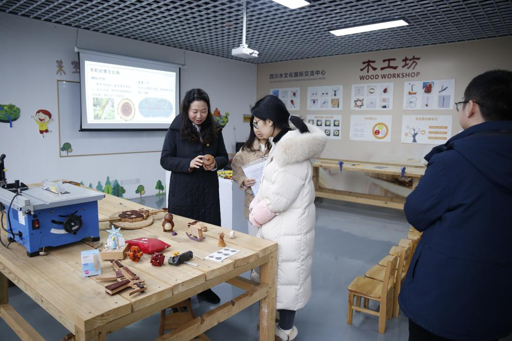 宣講會(huì)后,喬沛姝部長(zhǎng)一行參觀了四川木文化國際交流中心,詳細(xì)了解中心木文化宣傳推廣有關(guān)情況,聽取了木文化運(yùn)營過程中存在的難題和對(duì)團(tuán)區(qū)委的工作建議。在木文化未來發(fā)展方向上,喬部長(zhǎng)建議中心可以與區(qū)文旅局建立合作聯(lián)系,開展更多公益性和專業(yè)性木藝制作活動(dòng),加大木文化中心的宣傳推廣力度,實(shí)現(xiàn)木文化中心更長(zhǎng)遠(yuǎn)的發(fā)展。