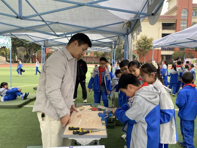 11月22日,成都市青白江區(qū)大彎小學建校60周年活動——“童趣社團·美育匯”在北區(qū)分校舉行,由四川木文化國際交流中心管理運營的“小小魯班?創(chuàng)意木工坊”社團(以下簡稱“木工坊社團”)受邀參加。