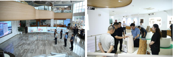 調(diào)研伊始,王海波一行首先觀看了中心宣傳片,通過影像全面了解交易中心的發(fā)展定位、業(yè)務(wù)布局及未來規(guī)劃。隨后,調(diào)研團深入四川木文化科普展示廳、四川林業(yè)成就展示廳、四川森工歷史展示廳和企業(yè)文化展示廳,開啟了一場沉浸式的林業(yè)文化之旅。在各展廳內(nèi),豐富多樣的木制展品與承載歷史記憶的物件有序陳列,從傳統(tǒng)木工工具到現(xiàn)代創(chuàng)新木藝制品,從林業(yè)發(fā)展早期的珍貴照片到生態(tài)文明建設(shè)的階段性成果,生動勾勒出四川林業(yè)歷史發(fā)展脈絡(luò)、生態(tài)文明建設(shè)進程以及森工企業(yè)的奮斗軌跡。