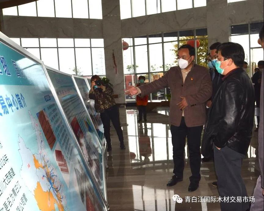 2020年4月2日下午,四川省供銷社黨組成員、副主任向益?zhèn)ヒ恍猩W臨青白江國際木材交易中心參觀調(diào)研,青白江區(qū)政府副區(qū)長張彬陪同調(diào)研。中心總經(jīng)理何仕海熱情接待了來賓。