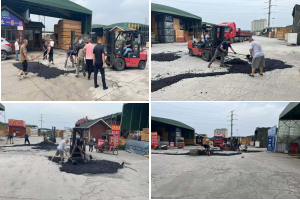 綜合部賡即到現(xiàn)場查看,處于核心位置的雙層混凝土破損區(qū)域給維修工作帶來了難題,破土維修將增大維修面積和成本,直接澆筑混凝土則不耐用,易二次破裂。面對兩難境地,物流公司綜合部和園區(qū)管理部群策群力,從市場外正在施工的青解路瀝青道路鋪設(shè)工程中獲得靈感,瀝青可與原有路面緊密結(jié)合,不易脫落或龜裂,修補(bǔ)后的路面平整度高,耐磨性好,采用瀝青修復(fù)破損路面也可有效降低維修成本。這一方案經(jīng)過充分論證后獲得了物流公司領(lǐng)導(dǎo)層的高度認(rèn)可。