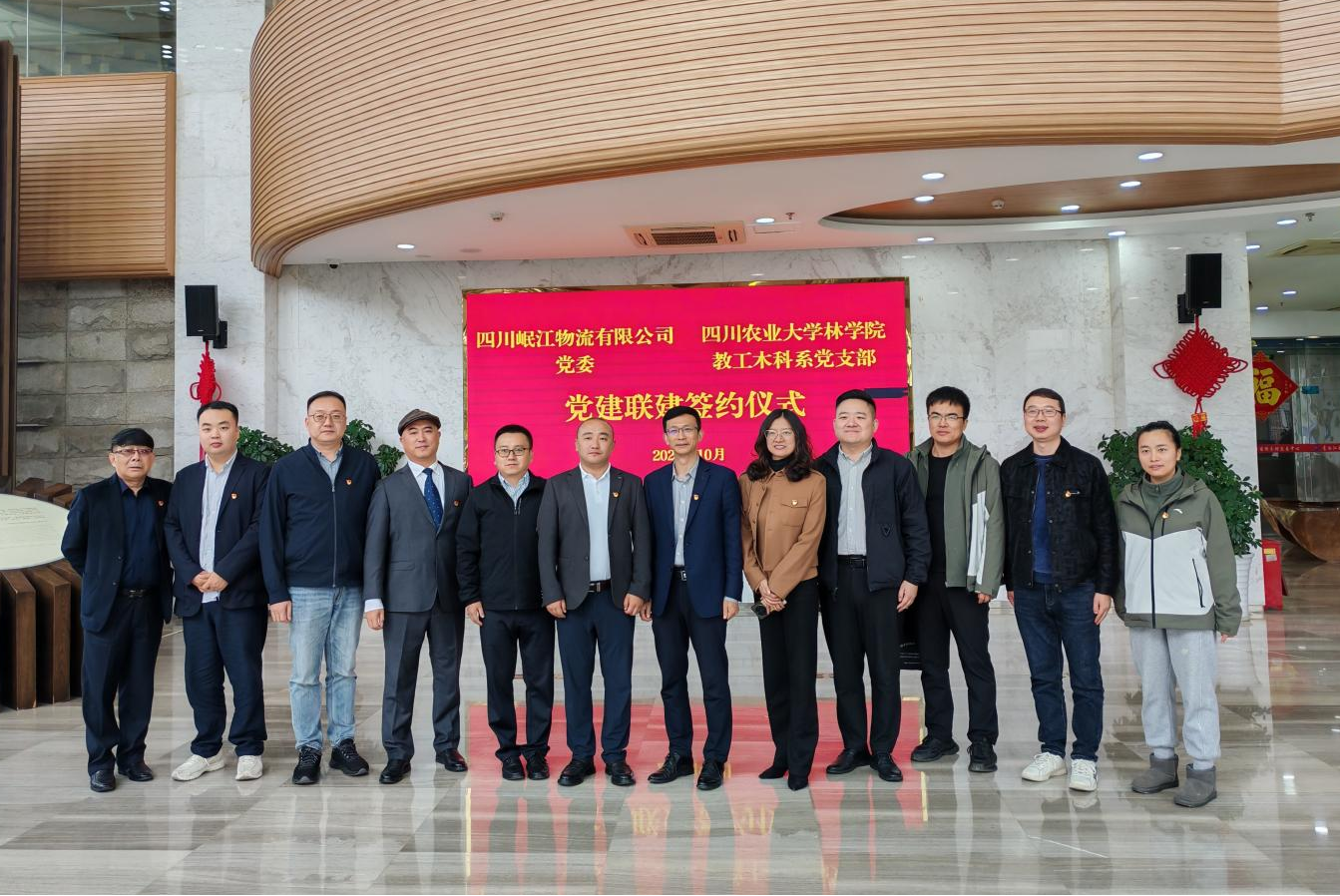 2025年10月28日上午,為充分發(fā)揮黨建引領(lǐng)作用,推動(dòng)校企資源優(yōu)勢(shì)互補(bǔ)、協(xié)同發(fā)展,四川農(nóng)業(yè)大學(xué)林學(xué)院教工木科系黨支部與四川岷江物流有限公司黨委在青白江國(guó)際木材加工貿(mào)易園區(qū)共同舉辦了黨建聯(lián)建活動(dòng)。四川農(nóng)業(yè)大學(xué)林學(xué)院黨委書記胡訊、四川岷江物流有限公司主要負(fù)責(zé)同志張力鏷出席活動(dòng)。