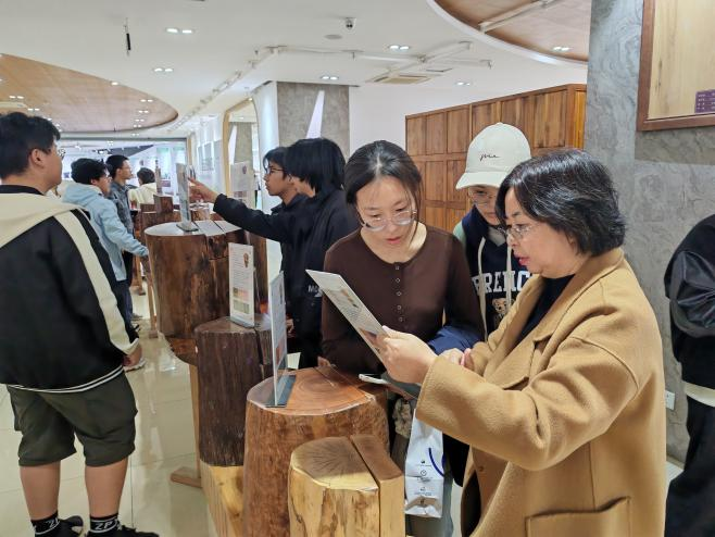 比賽正式開始前,指導(dǎo)老師、參賽選手及現(xiàn)場(chǎng)觀眾共同走進(jìn)四川木文化國(guó)際交流中心開展沉浸式研學(xué)。在古建模型展區(qū)與木材標(biāo)本陳列區(qū),指導(dǎo)老師結(jié)合實(shí)物現(xiàn)場(chǎng)授課,讓同學(xué)們?cè)谟|摸與觀察中深化對(duì)木材科學(xué)的認(rèn)知,為后續(xù)競(jìng)賽奠定堅(jiān)實(shí)基礎(chǔ)。