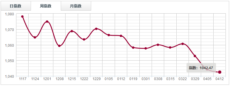 本周原木分類指數(shù)繼續(xù)呈現(xiàn)弱勢整理態(tài)勢,周指數(shù)報1042.47點,周環(huán)比跌0.16%。周銷量環(huán)比下跌0.28%,交易額增加2.56%。