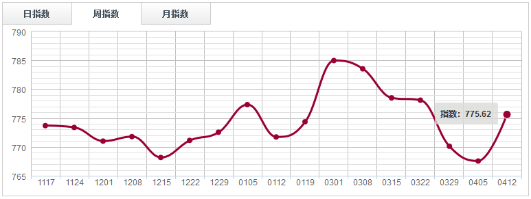 經(jīng)過長時間的綠盤調(diào)整之后,本周鋸材指數(shù)觸底反彈,報收775.62點,環(huán)比上漲1.05%。其中魚珠鋸材指數(shù)、南康鋸材指數(shù)分別下跌0.01%、1.3%;福人鋸材指數(shù)、大西南鋸材指數(shù)分別上漲2.24%、0.93%。