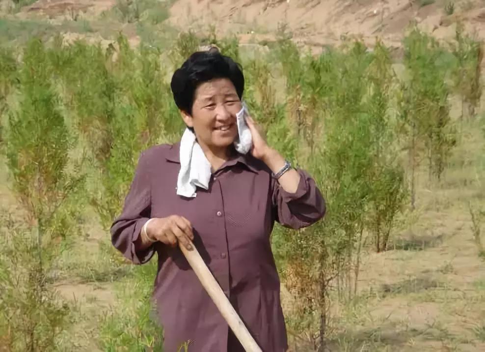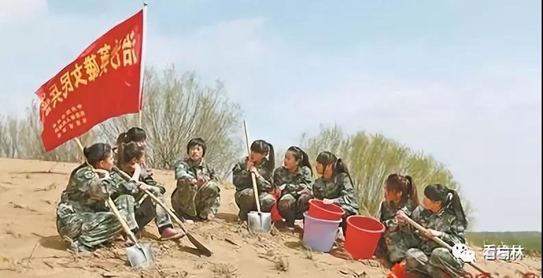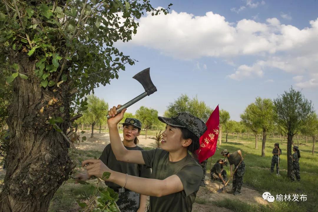 榆林市榆陽(yáng)區(qū)補(bǔ)浪河鄉(xiāng)治沙女民兵連的隊(duì)員們?cè)谛藜魳?shù)枝 劉繼遠(yuǎn) 攝